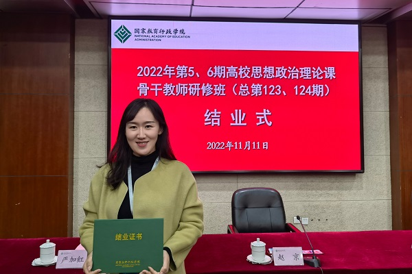 2022年10月30日至11月12日,中宣部、教育部联合举办的2022年第5、6期“全国高校思政课教师学习贯彻党的二十大精神专题研修班”(总第123、124期)在国家教育行政学院开班。本次研修班由教育部社会科学司统一调训,来自全国28个省区市和新疆生产建设兵团、部分军队院校的60名思政课骨干教师参加培训。我院思政课教师彭程参加本轮调训。