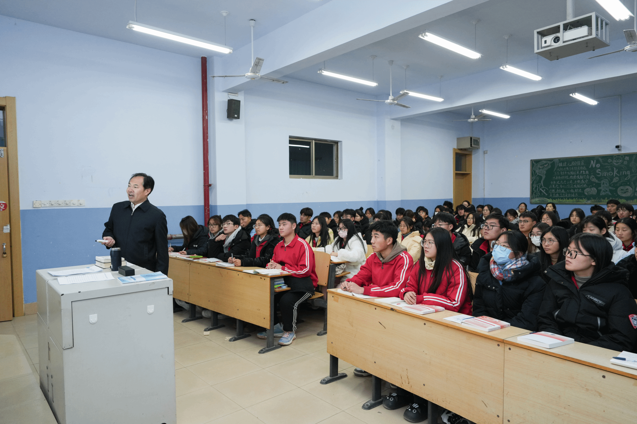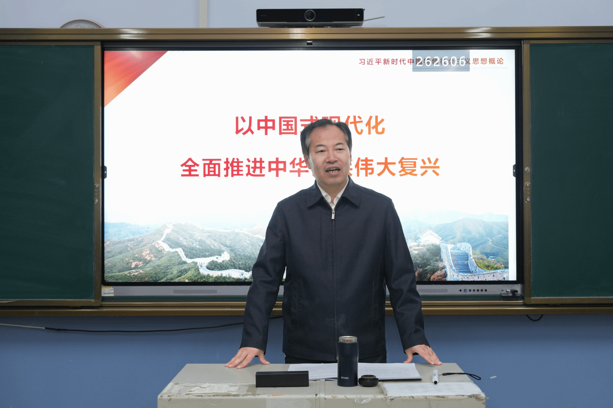 为进一步推动习近平新时代中国特色社会主义思想进教材进课堂进头脑,用党的创新理论铸魂育人,落实立德树人根本任务,12月21日下午,党委书记刘荩一为yl23455永利集团2023级党务工作专业学生讲授了一堂题为“以中国式现代化全面推进中华民族伟大复兴”的思政课。