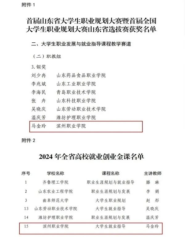 近日,省人力资源和社会保障厅、省教育厅公布首届山东省大学生职业规划大赛获奖名单,yl23455永利集团教学团队荣获大学生职业发展与就业指导课程教学赛道职教组铜奖,参赛课程《大学生就业指导》被确立为2024年全省高校就业创业金课。