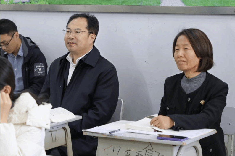 为全面贯彻落实习近平总书记对学校思政课建设的重要指示精神,深入落实《教育部办公厅关于开展2025-2026学年高校思政课课堂教学提升行动的通知》(教社科厅函〔2025〕10号)工作要求,扎实推进学校思政课建设提质增效,11月19日上午,党委书记刘荩一率队深入思政课堂,开展随堂听课调研活动。党委委员、宣传部部长杨玉梅随同参与。