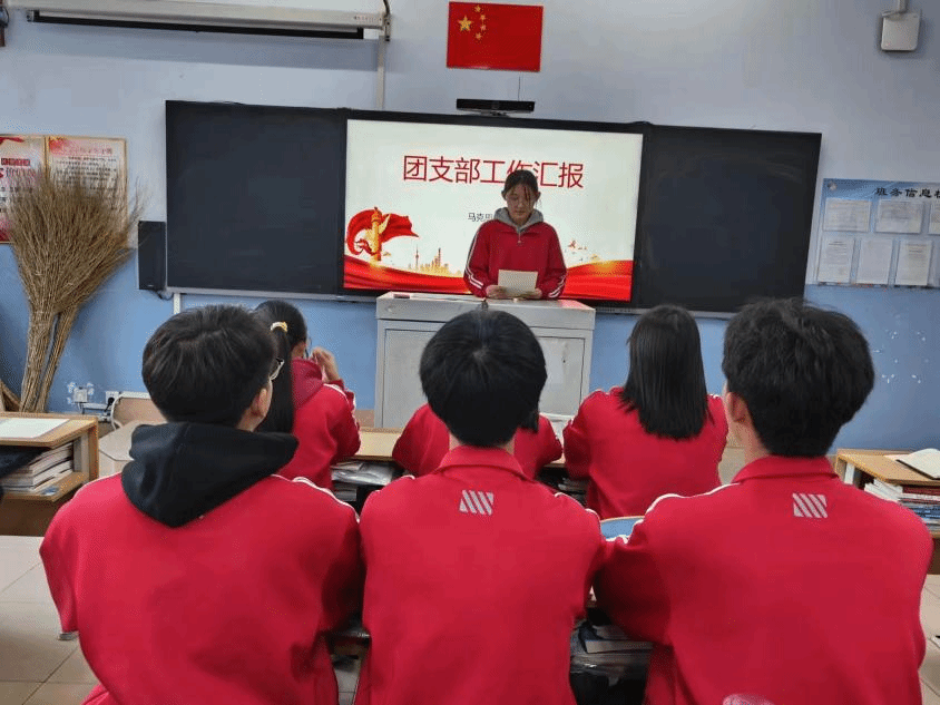 组织生活会和团员教育评议以班级支部为单位,邀请教师党员参与总结和点评,活动共分为五个环节:一是引领团员和青年认真学习领会习近平新时代中国特色社会主义思想,引导同学们努力掌握这一重要思想的世界观和方法论,善于运用贯穿其中的立场观点方法分析问题;二是团支部书记报告团员和青年主题教育开展情况,通报团支部委员会查找不足等情况;三是团支部书记、其他团员依次发言,交流体会、认真反思个人问题、查找不足改正问题,对其他团员进行评议,肯定成绩、指出不足;四是通过个人自评、团员互评和组织评价相结合的方式开展团员教育评议;五是重温入团誓词、齐唱团歌,增强广大团员青年的现场感和仪式感。
